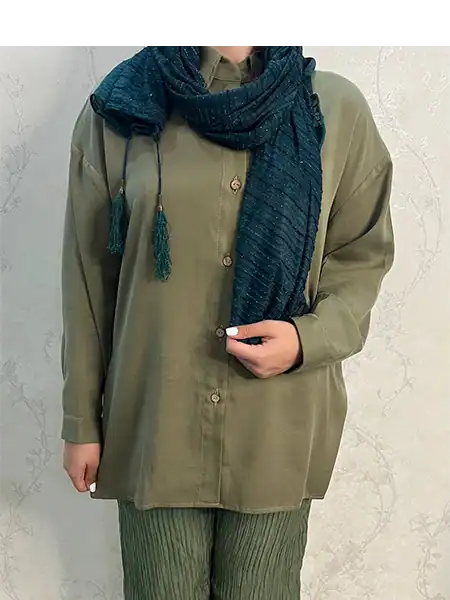 شومیز زنانه راحت سنتل مدل دکمهدار چاکدار