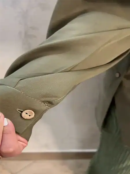 مدل چاکدار بغل باعث آزادی حرکت و راحتی بیشتر میشه، و دکمههای جلو هم ظاهر شومیز رو رسمیتر و کاربردیتر میکنن.