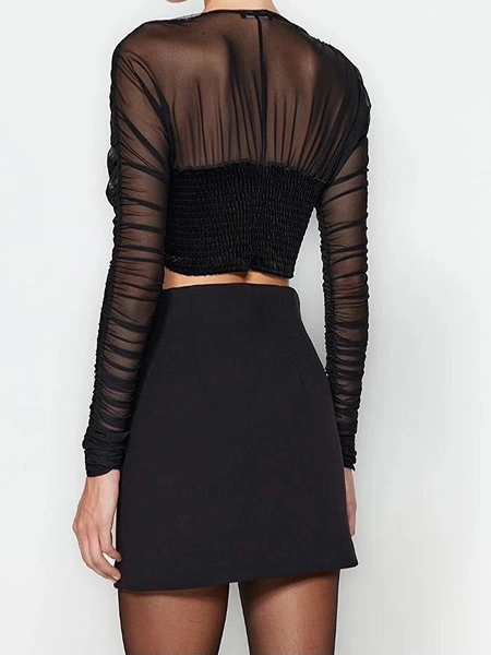 کراپ مجلسی آستین بلند مشکی ترک – کراپتاپ زنانه شیک و خاص برای مهمانی